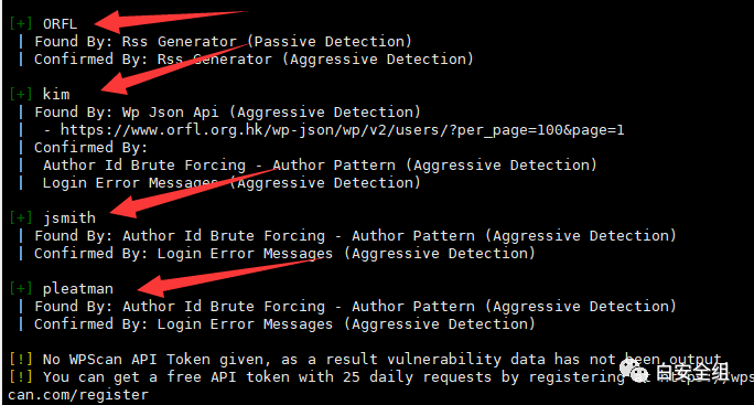 /wp-login.php我们这先使用wpscan工具来获取可能的用户名