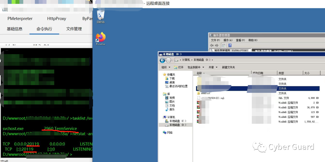 下面是开启windows远程桌面的基本命令,在远程桌面开启的情况下,通过tasklist 和netstat 命令找到远程桌面连接端口,并创建用户连接