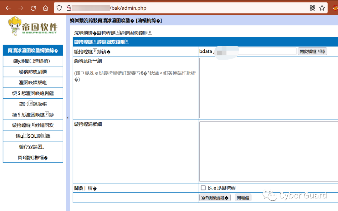 先使用万能cookie 进入后台,管理备份目录,网站会生成一个备份文件config.php,再利用字符串替换的功能把webshell写入config.php