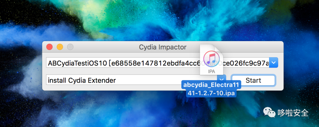 3.拖动下载好的abcydia_UndecimusX.ipa拖到Cydia Impactor里