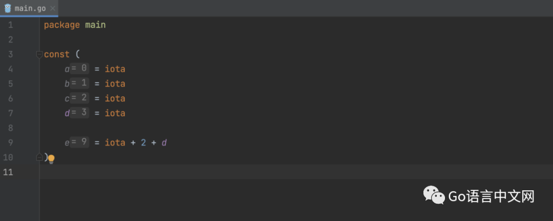 GoLand 现在显示常量定义块的嵌入提示。iota这在 -派生的常量块中应该特别有用,其中提示显示iota与每个位置关联的值。