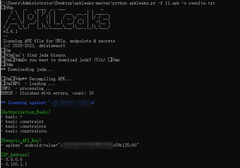 $ python3 apkleaks.py -f ~/path/to/file.apk