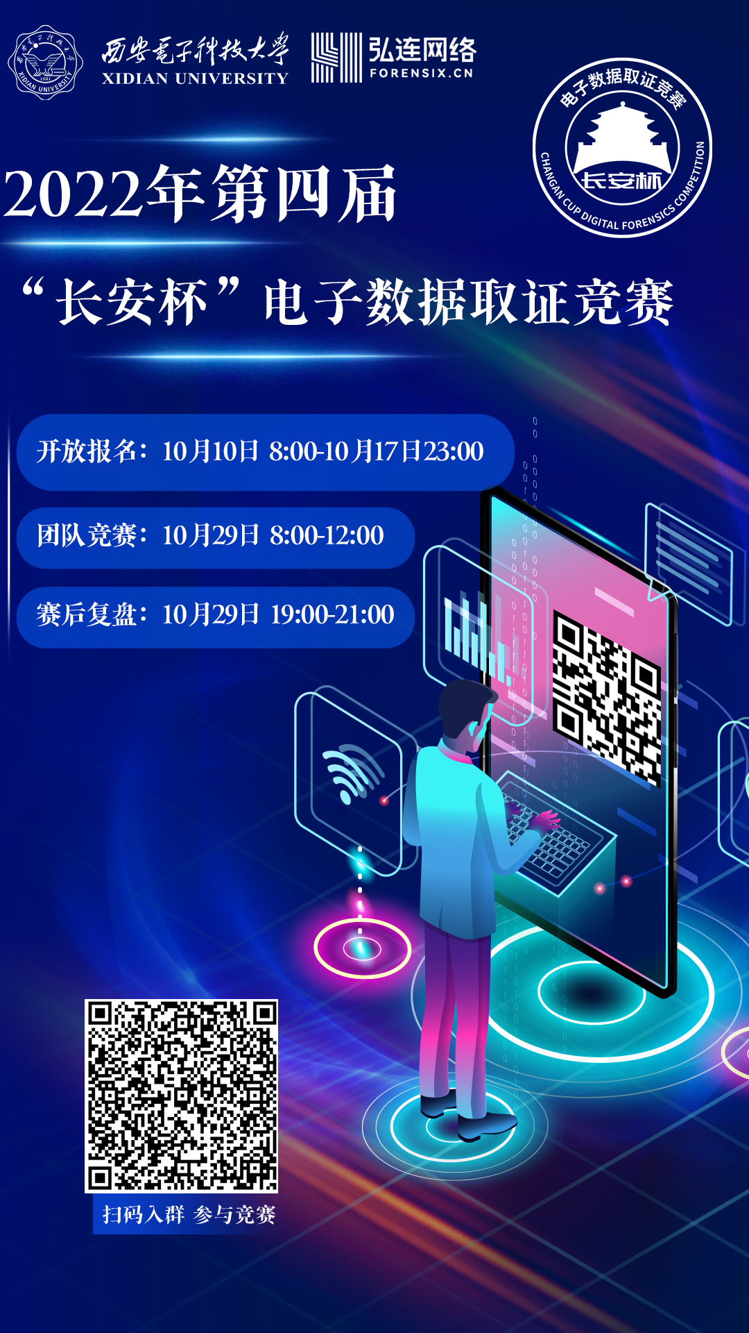 为促进电子数据取证相关专业人才培养工作,提高电子数据取证能力和水平,推动电子数据侦查取证技术的发展,由西安电子科技大学主办的第四届“长安杯”电子数据取证竞赛拟于2022年10月29日举行。为防控疫情,本届竞赛将在线上进行。参赛选手将对模拟的真实案例进行电子数据调查取证,全面考核选手电子数据取证的综合素质和能力。本赛事旨在以赛促学、以赛代练,同时选拔优秀专业人才。