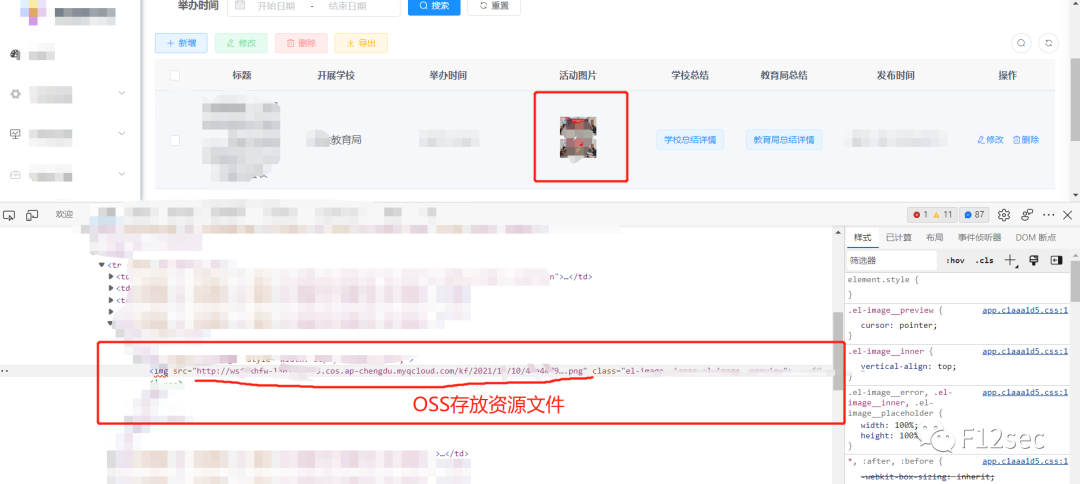 通过翻查其他的功能点,我发现该系统的图片之类的资源文件都是放在云OSS上。
