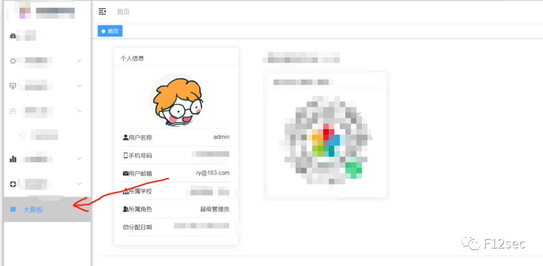由于该系统是魔改版,一般会在基础上魔改一些自己的功能点,我们这里翻翻看,有一个大看板的功能点比较吸引我,尝试访问。
