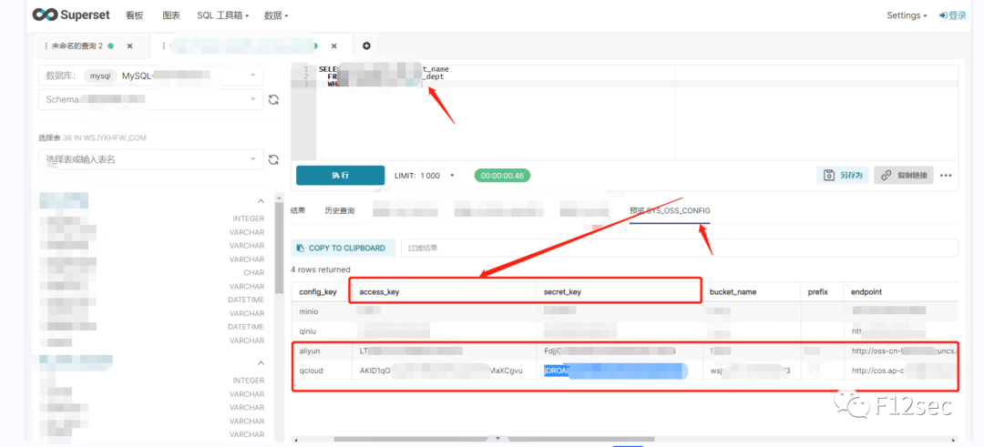 我不禁发出了思考,既然用到了云服务器,那数据库里会不会有和云服务器相关的信息?AccessKey和Secret?