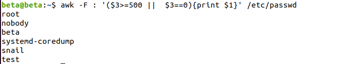 awk -F : '($3>=500 || $3==0){print $1}' /etc/passwd- 往期推荐 -