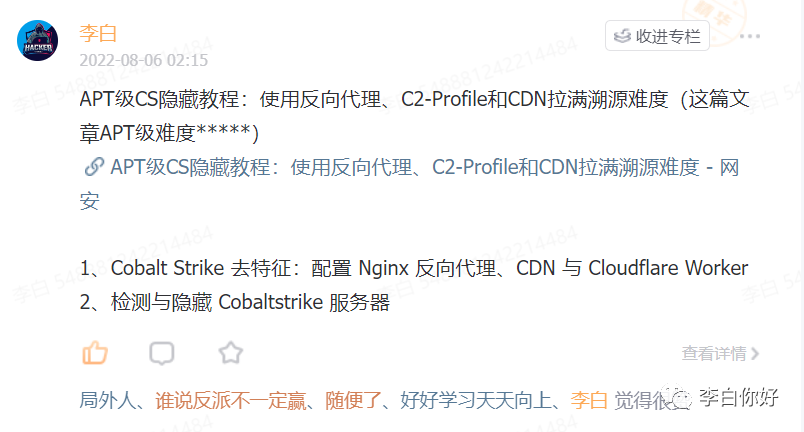 本星球汇聚了各领域安全研究人员,专注于红蓝攻防实战、内网渗透、代码审计、挖洞技巧、安全开发、SRC挖掘等等技术分享,其中包含2000+安全攻防集合资源,每日分享攻防行业最前沿APT学习资料,并且不定时0day分享于学习并且培养挖掘能力拓展,以及从安全角度开发提高挖掘漏洞思维与能力。