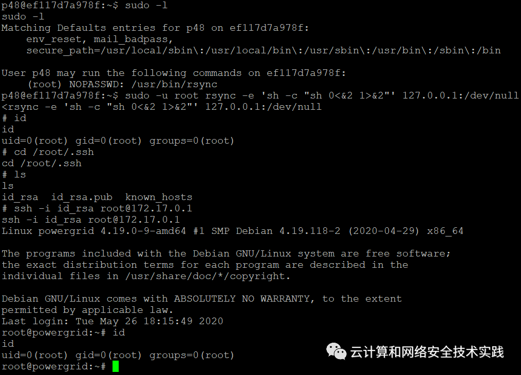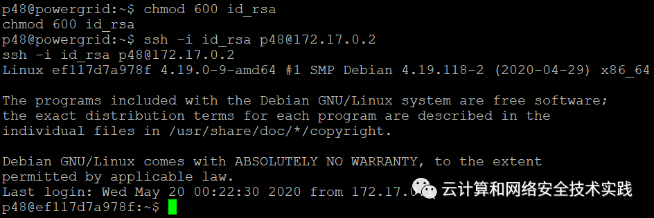 再ssh登录回宿主机,ssh -i id_rsa [email protected],确认是root,