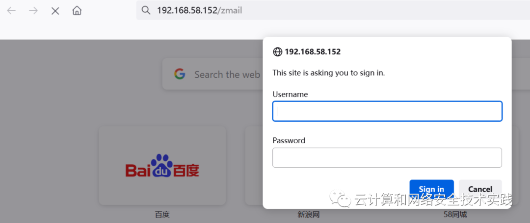 浏览器访问http://192.168.58.152/zmail,需要登录,