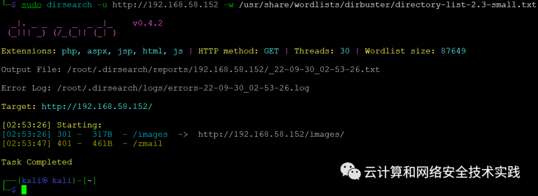 做个目录爆破,sudo dirsearch -u http://192.168.58.152 -w /usr/share/wordlists/dirbuster/directory-list-2.3-small.txt,
