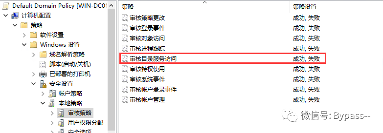 在域控组策略中开启审核策略,审核目录服务访问(成功和失败),来记录所有的目录服务访问事件。