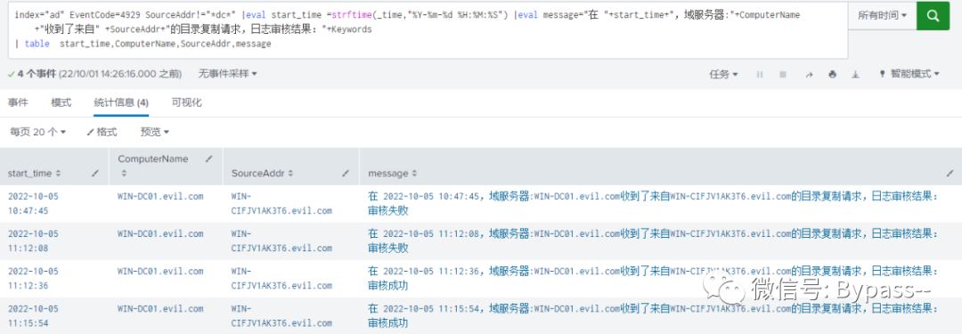 我们可以根据AD Event日志提取关键特征,通过监视源地址字段,从而可以实时监测DCShadow攻击。