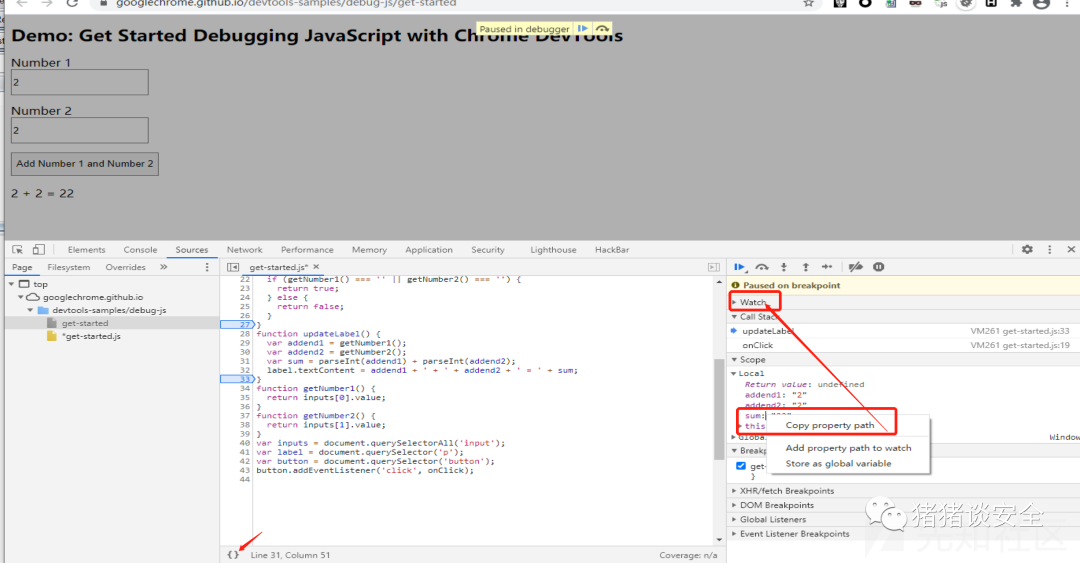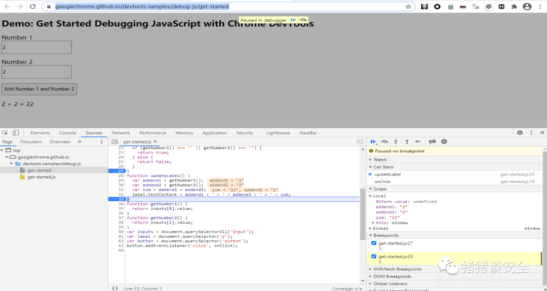 debug demo:https://googlechrome.github.io/devtools-samples/debug-js/get-started