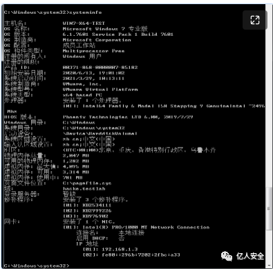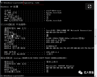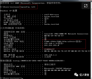 内网网段信息,查看网卡信息收集内部地址段的信息