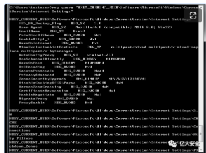 reg query "HKEY_CURRENT_USER\Software\Microsoft\windows\CurrentVersion\INternet settings"