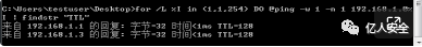 for /L %I in (1,1,254) Do @ping -w l -n 1 192.168.1.%I findstr "TTL="