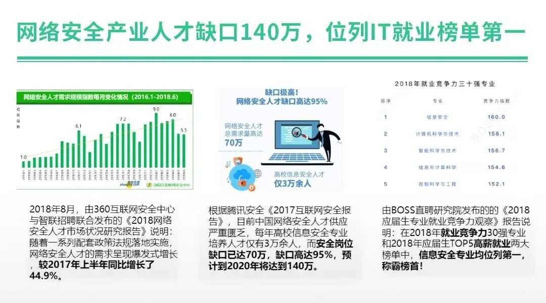 (1)在政府、企事业单位及安全服务商等从事网络安全运维的人员;(2)软件开发、软件测试等职业发展受限,寻求再次突破的在职IT人员。(3)销售、行政等压力大、不稳定、没有硬技能傍身的在职人员。(4)工作1-3年不满足现状、对升职加薪有强烈欲望的职场新人。随着万物互联技术不断推进,国家网络安全法,等级保护法,数据安全法、关基保护条例、个人信息保护法的依次颁布,中国正在进入全民安全时代。网络安全对于大部分政企单位来说,已经从[可选项]变成了[必选项]。在以前,很多政企单位在进行 IT 部门及岗位划分时,只有研发和运维部门,安全人员直接归属到基础运维部。而现在,越来越多单位为了满足国家安全法律法规的要求,必须成立独立的网络安全部门,广招高级安全人才、组建 SRC(安全响应中心),为自己的产品、业务、数据、专利、技术保驾护航。根据腾讯安全发布的《互联网安全报告》,2020年中国网络安全人才供应严重匮乏,每年高校安全专业培养人才仅有3万余人,而网络安全岗位缺口已达140万,缺口高达98%。而360网络安全中心的研究报告中则指出,网络安全人员每年的需求增长速度近50%。各行各业各单位都在进行信息化和数字化升级,新技术,新应用不断落地,各种业务数据也在全面由线下搬到云端,因此网络空间安全的重要性日益提高,网络安全行业高速增长,促使网络安全人才需求快速扩张。网安行业人才缺口大,发展空间大,薪资高,可兼职。这对网络安全行业的学习者和从业者都是一个好的赛道。所以如果有志从事网络安全工作,现在就要夯实技术基础,乘势而动,毕竟大家都明白站在风口,猪都能飞起来的道理。 在数字化转型背景下,各类政企组织的业务生产更是离不开网络和信息系统的支撑。在网络和信息系统的使命周期中,安全运营是持续时间最长、投入资源最多的一个环节,也是直接影响政企组织业务生产的阶段。网络安全威胁也正逐步显性化,勒索攻击的发生次数大幅增长,近年来的一些全球热点事件也佐证了这一事实。而疫情更是加速了数字化转型的进程,利用办公信息化促进运营效率的趋势开始逐渐明显。在此情况下,被“委以重任”的安全运营的演进基础便是运营框架的演进,来指导着各项工作的开展。于是,运营的理念、模式、手段也发生转变。安全运营让企业的安全建设从满足合规到切实有效;作为安全产业的重要趋势,安全运营让产业从产品提供转向能力输出。顺应产业要求,360公司从近年来大型央企、重要行业、安全产业、一线专家在企业安全体系建设实践经验中建立了《360网络安全运营工程师课程》认证知识体系,为学员指明安全运营工程师的技术路线和进阶路径,帮助学员完成安全运营工程师能力的构建。拥有360安全运营工程师认证资格,升职加薪快人一步。没有网络安全就没有国家安全。站在国际网络安全发展视野下,我们看到了安全运营对于组织和企业业务发展的意义,无疑是提高网络安全防御能力的一条可行道路。希望大家都能加入网安行业白帽子军团,守护国家网络安全。