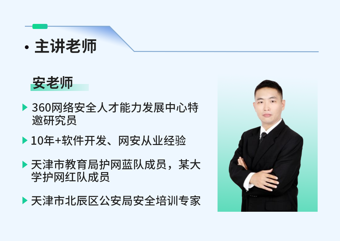 360网络安全工程师限量内训课来了!360网络安全人才能力发展中心特邀研究员安老师亲临直播间对网络安全工程师行业现场答疑解惑扫码免费报名,限额50人扫码添加360老师免费报名本期内训就业课,你将收获: