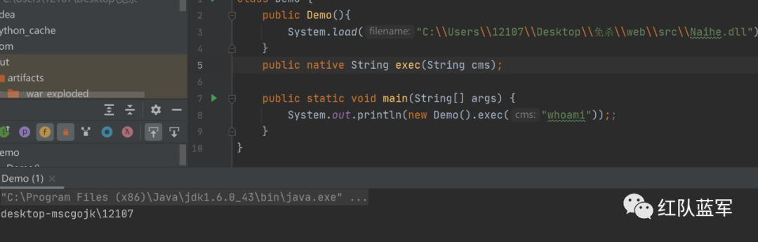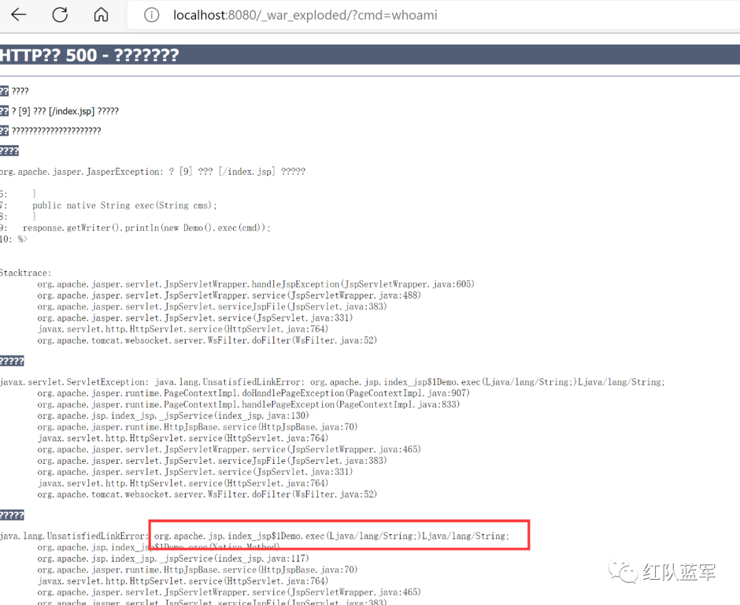 但发现并不能正常运行,通过分析发现原因还是在DLL上,由于在生成DLL时类的全限定名,已经写死了,导致在jsp中定义的类的全限定名与DLL中的不一致,导致无法正常运行。为了时全限定名一致,笔者使用字节码进行加载,但可惜的是,本地方法(native)并本来通过反射调用。最后得出结论,jni是无法作为webshell来执行命令的