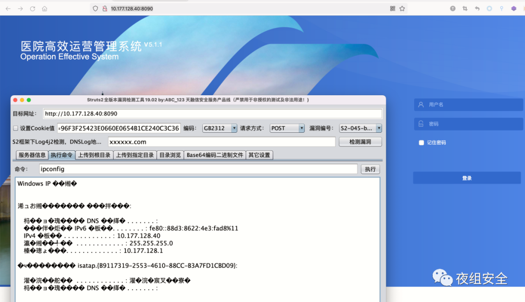 从扫描结果中还可以看到http\://10.177.128.8:8090 \[红帆OA] ,判断这个主机可能是双网可部署在公网上面。