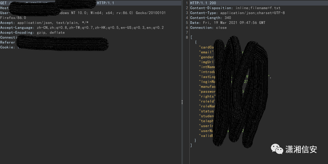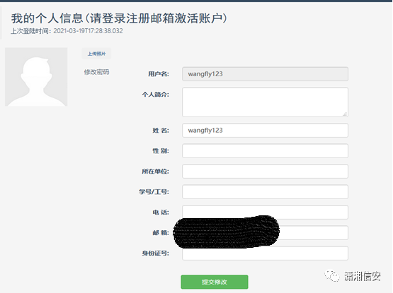 修改不同的邮箱返回对应的个人信息,ok一枚信息泄露漏洞到手。select * from user where email = xxxxxxx;