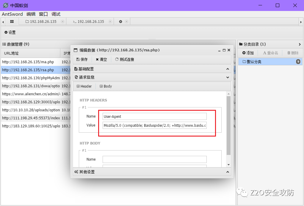 同时记得修改 UA,默认的 UA 为 antSword/v2.1,相当于向杀软自报家门了