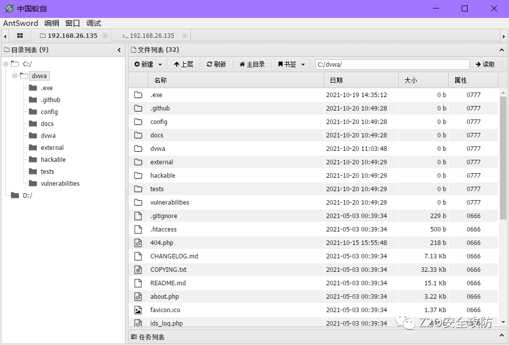 红框内的就是刚刚完全免杀的 webshell,但是连接时会提示403,连接被 D 盾拦截了