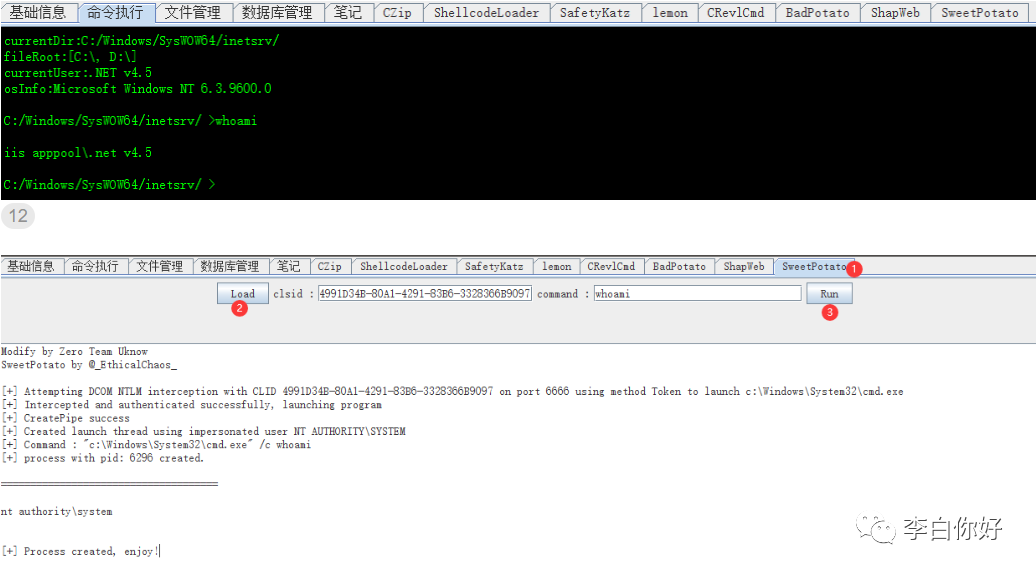 提权用 ms16-075 ,哥斯拉这个webshell 管理工具集成了这个提权补丁。
