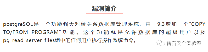 8.【漏洞分析】PostgreSQL 高权限命令执行 (CVE-2019-9193)漏洞复现&实战