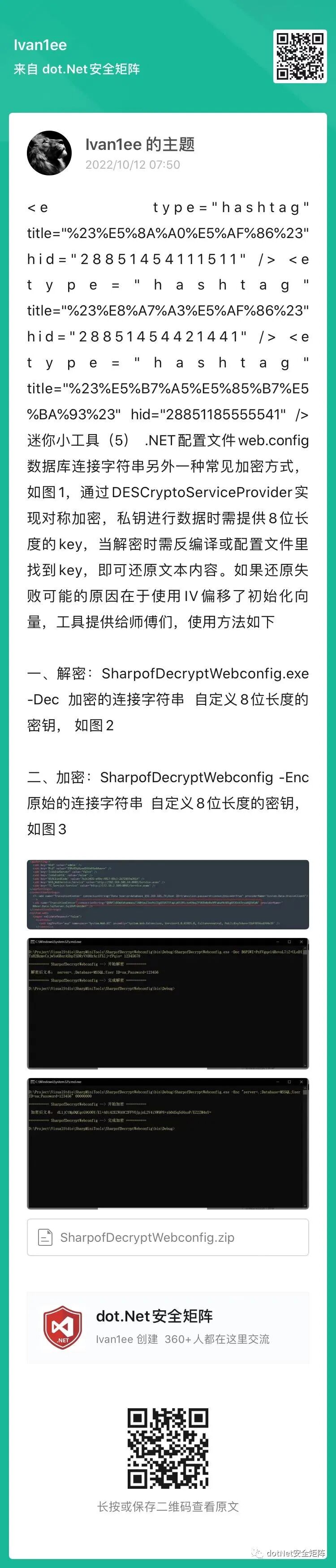 .NET安全矩阵群有位师傅问起web.config里数据库连接字符串被编码加密,如何解密得到原始字符串
