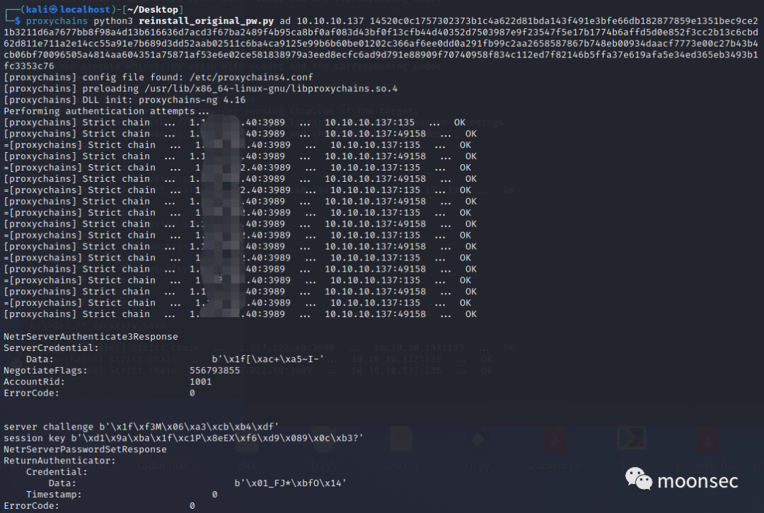 proxychains python3 reinstall_original_pw.py ad 10.10.10.13714520c0c1757302373b1c4a622d81bda143f491e3bfe66db182877859e1351bec9ce21b3211d6a7677bb8f98a4d13b616636d7acd3f67ba2489f4b95ca8bf0af083d43bf0f13cfb44d40352d7503987e9f23547f5e17b1774b6affd5d0e852f3cc2b13c6cbd62d811e711a2e14cc55a91e7b689d3dd52aab02511c6ba4ca9125e99b6b60be01202c366af6ee0dd0a291fb99c2aa2658587867b748eb00934daacf7773e00c27b43b4cb06bf70096505a4814aa604351a75871af53e6e02ce581838979a3eed8ecfc6ad9d791e88909f70740958f834c112ed7f82146b5ffa37e619afa5e34ed365eb3493b1fc3353c764关注公众号