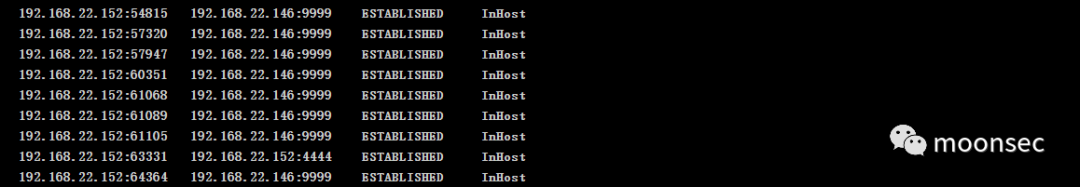 通过netstat-nt也是能看到本机与目标9999端口建立连接