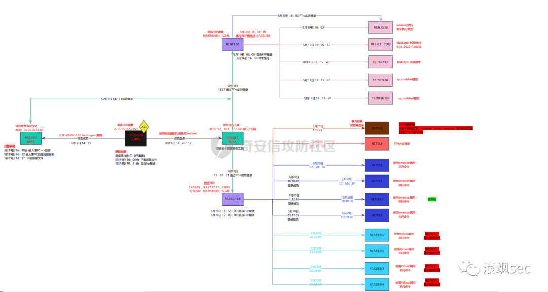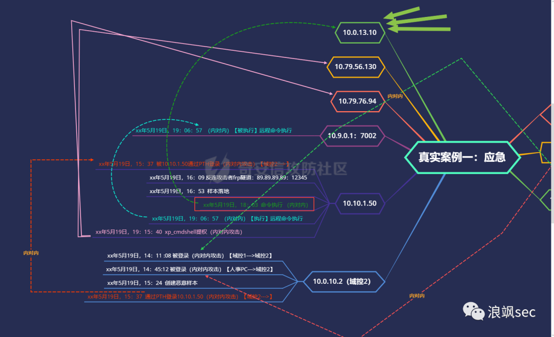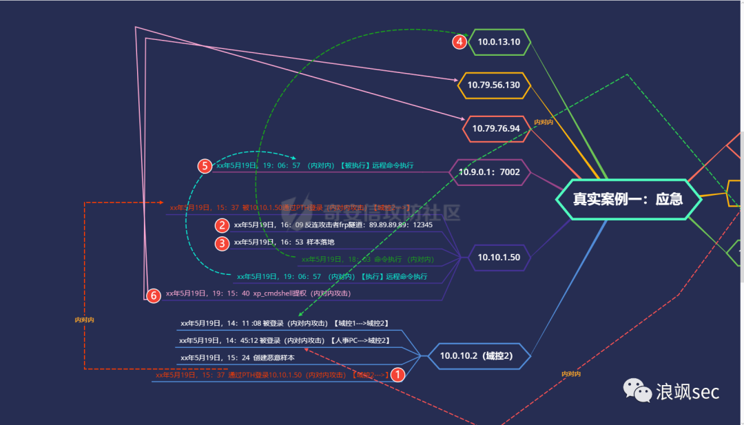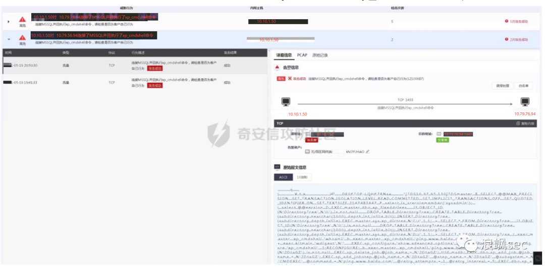 受害者(内网):10.10.1.50 --> 受害者(内网):10.182.11.1:3306受害者(内网):10.10.1.50 --> 多个内网服务器,发起SQLserver 的xp_cmdshell提权