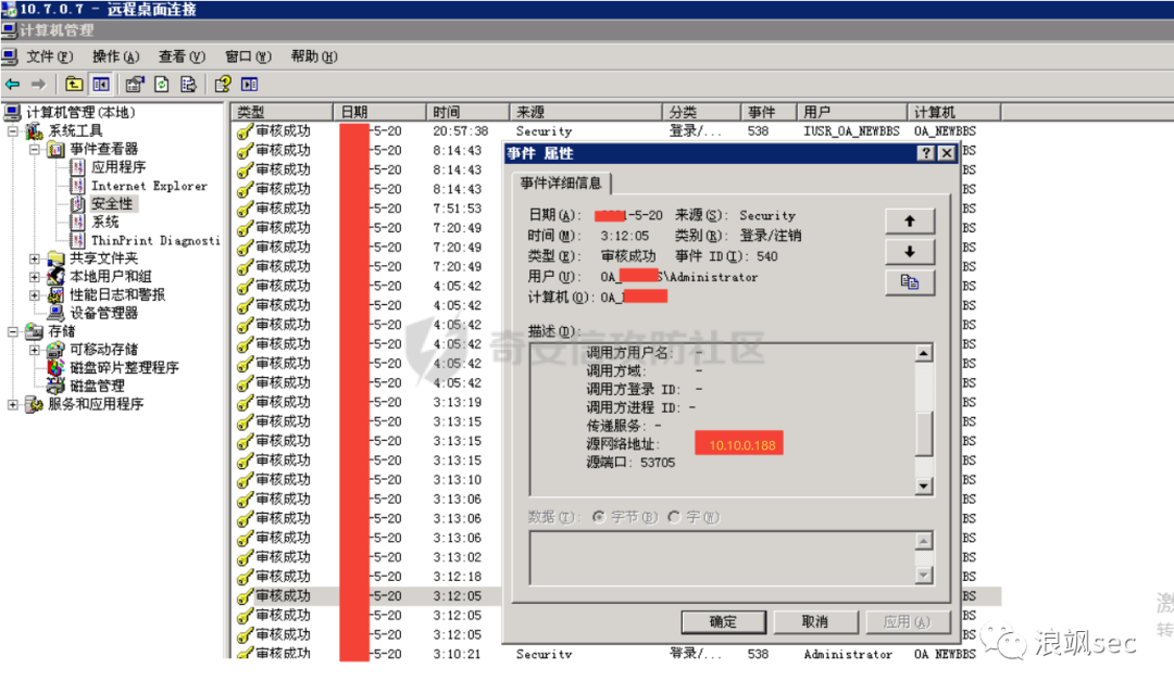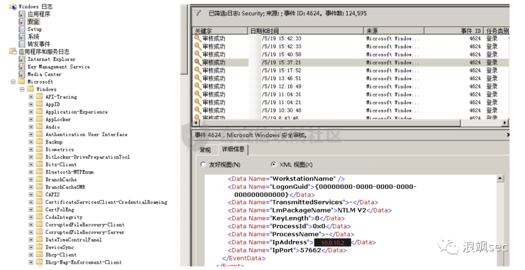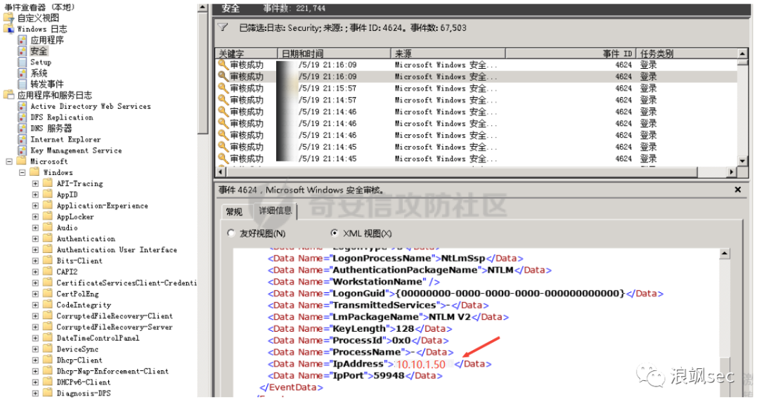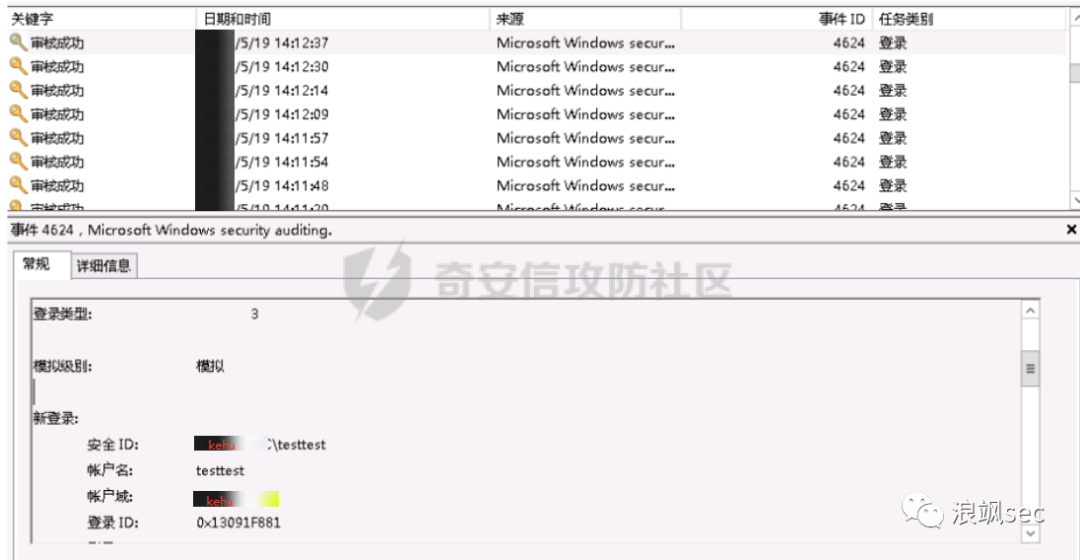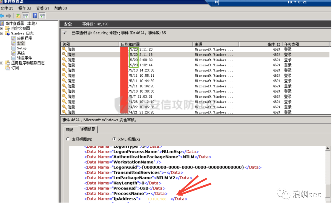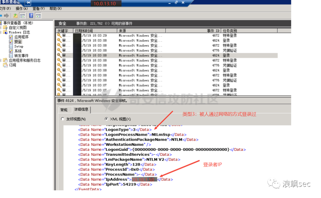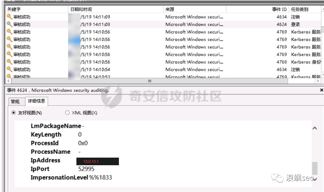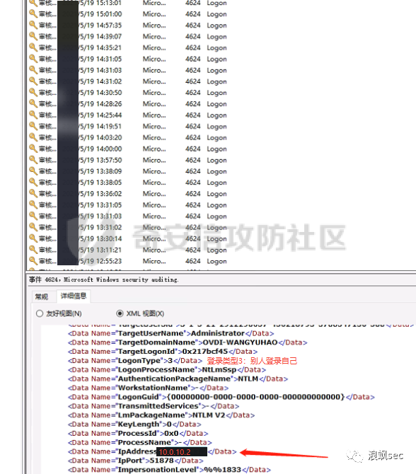 在系统安全日志内发现 攻击者使用内网横向手法 pass the hash 方式登陆过 该主机