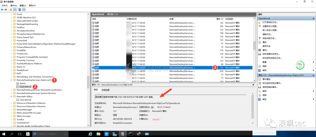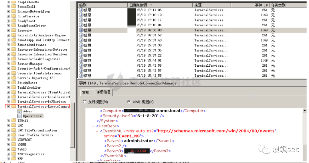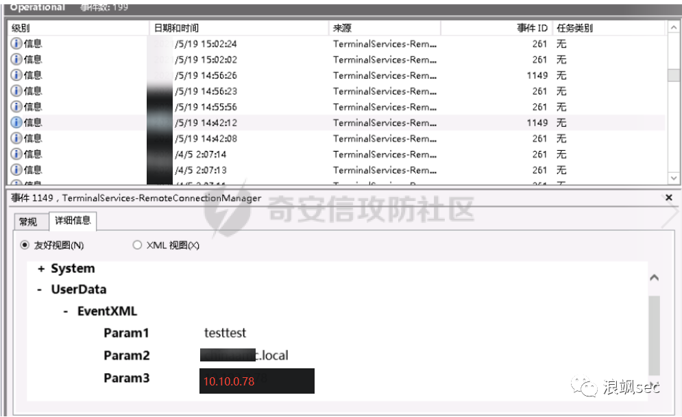 攻击者(受害者):10.0.0.1(域控1) ----连接-> 受害者:10.10.0.2(域控2)分析日志:eventvwr --->TerminalServices-RemoteConnectionManager
