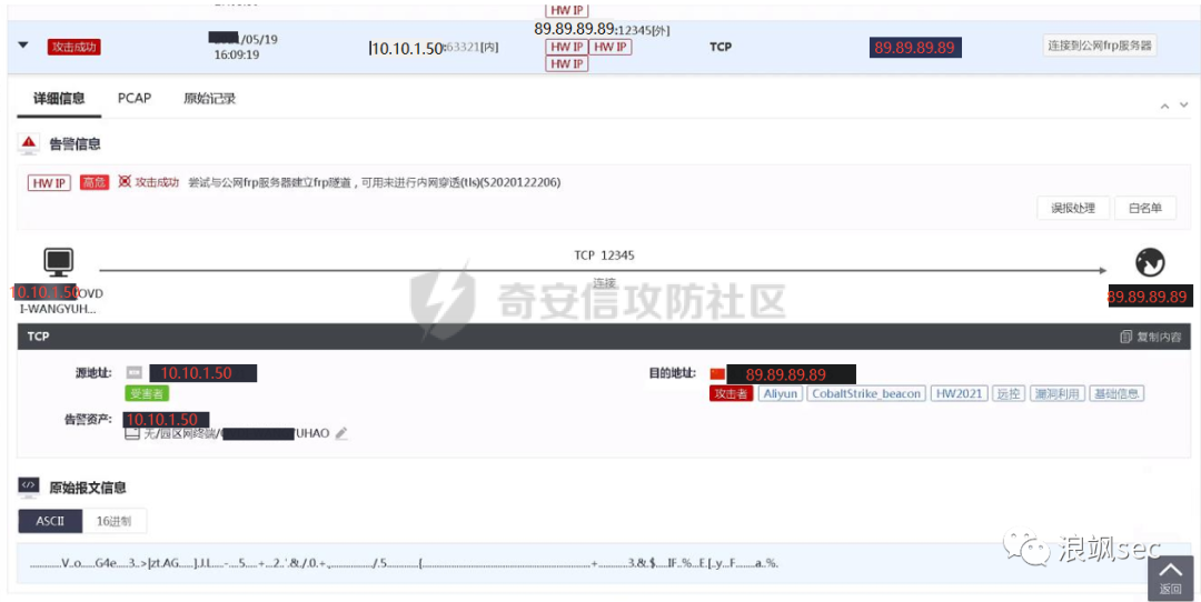 受害者:10.10.1.50 -->反连攻击者frp隧道:89.89.89.89:12345