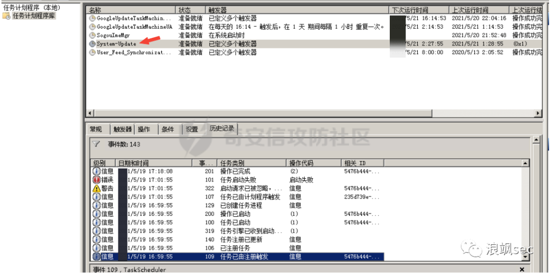 使用火绒工具查看启动项发现存在数字签名、公司名称异常的文件: 发现于 xxx年 5 月 19 号 16 时 59 分已写入计划任务,建立持久性后门。xx年5月19日, 15:37:21 攻击者使用了pth方式登陆了受害者机子 内对内