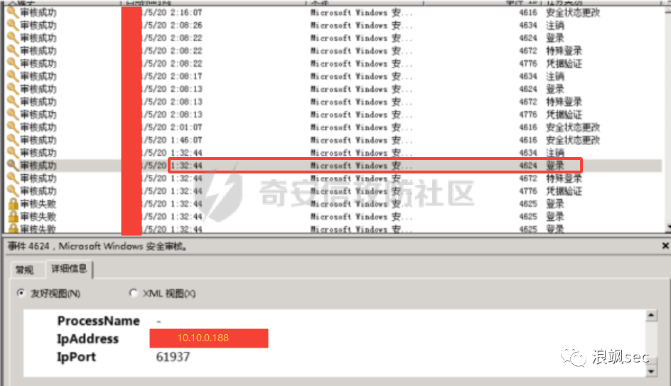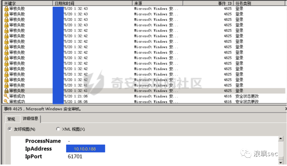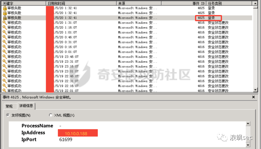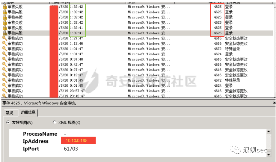 4625:代表登录失败,只有开始登录才会存在登录失败,所以这个时间就是暴力破解的开始时间