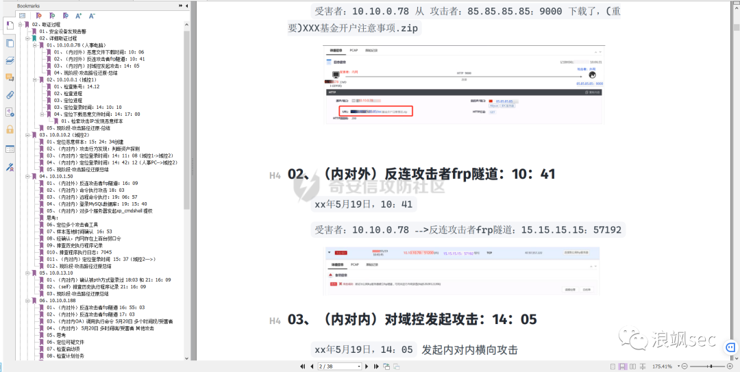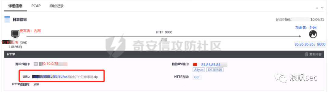 xxx检测平台,检测到客户主机10.10.0.78、10.0.10.1、10.10.1.50等存在多条攻击成功告警,不仅存在内对外攻击,并且还存在内对内攻击告警。且,10.0.10.1为域控服务器,初步推测,内网已经失陷,遂上机排查 xx年5月19日,10:06受害者:10.10.0.78 从 攻击者:85.85.85.85:9000 下载了,(重要)XXX基金开户注意事项.zip