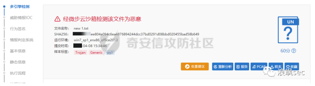 对于来源不明的软件或者文档,可以上传xx云沙箱进行多引擎查杀,避免漏报。该平台可进行免费多引擎查杀和样本分析。