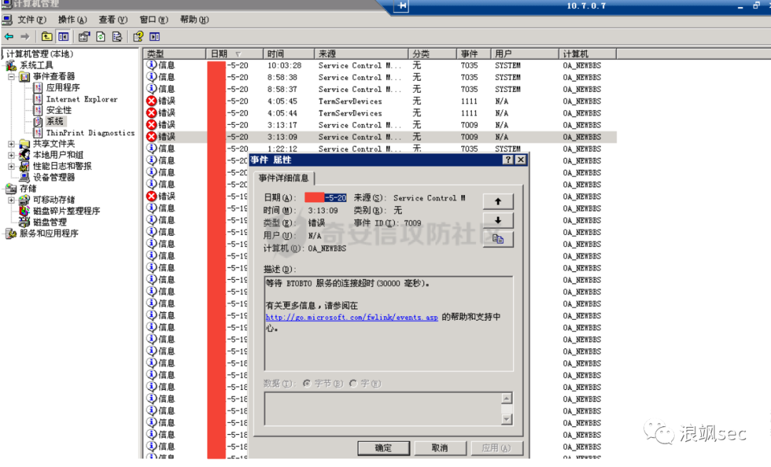 查看系统日志发现服务 BTOBTO 存在错误信息,未执行成功