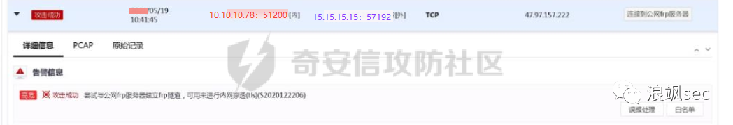 受害者:10.10.0.78 -->反连攻击者frp隧道:15.15.15.15:57192