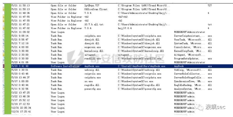 经排查,攻击者在5月19日和5月20日执行了,ping、cmd、psexec等可执行程序